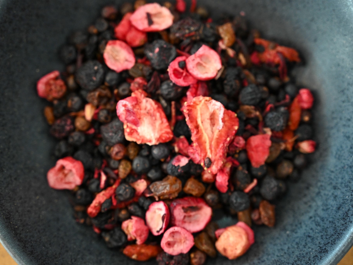 Tauche ein in die Welt der Beeren mit unserer 12 Beeren Früchteteemischung!