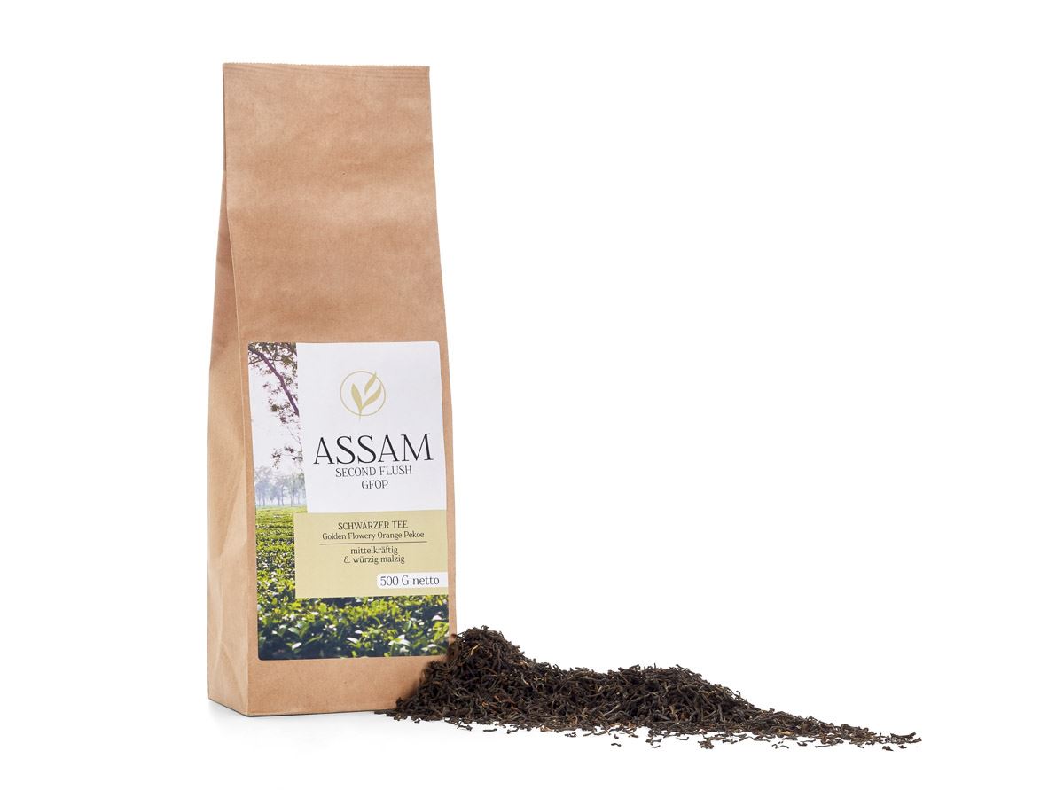 Der Teedistrikt Assam, aus dem erstmals 1839 Tee in London zur Auktion gebracht wurde, stellt das größte zusammenhängende Teeanbaugebiet der Welt dar. Unser Assam stammt aus der bevorzugten second flush-Periode, der Juni/Juli-Ernte, vor dem Einsetzen des großen Monsunregens. Sein mittelkräftiger und typisch würzig-malziger Geschmack, sein tippiges Blatt und seine dunkle Tasse zeichnen diesen Tee als sehr guten Konsum-Assam aus. Eine wahre Freude in den frühen, morgendlichen Stunden! Auch mit einem Schuss Milch und Kluntjekandis ein echter Genuss!