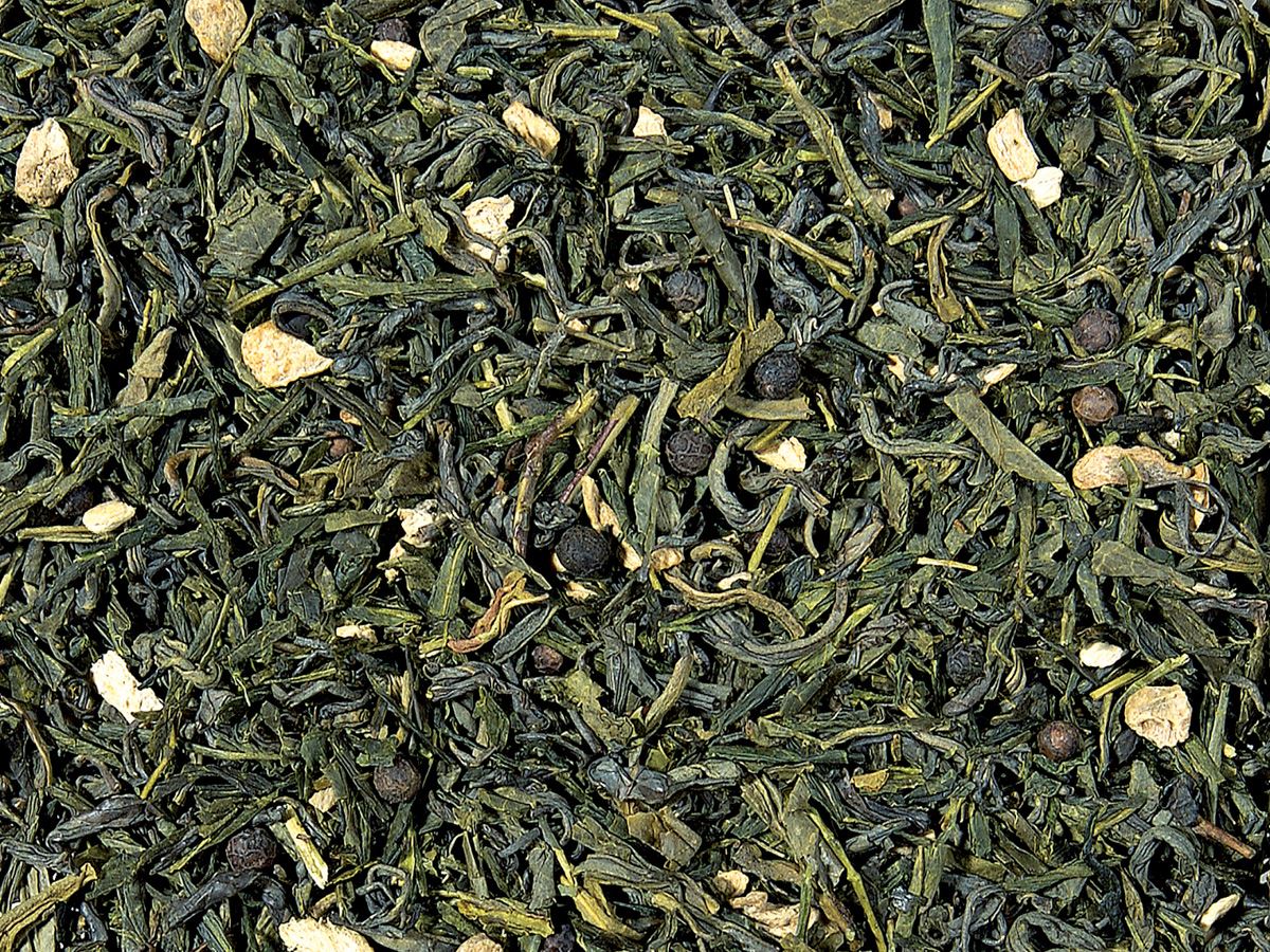 Eine fabelhafte Kombination! Neben dem grünen Tee kommen auch die Ingwerwurzelstücke und der schwarze Pfeffer in dieser Mischung voll zur Geltung. Pur und aussagekräftig!
